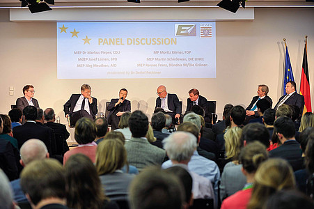 Auf Einladung des Brüsseler Verbands der Europa-Union Deutschland haben am 18. Februar 2019 führende Europa-Politiker in der Landesvertretung Hessen über die Zukunft Europas angesichts der bevorstehenden Wahl am 26. Mai 2019 diskutiert. Die Veranstaltung war mit über 400 Teilnehmern überaus stark besucht. Moderiert wurde die Runde von dem erfahrenen Journalisten und stellvertretenden Chefredakteur der Börsenzeitung, Herrn Dr. Detlev Fechtner.